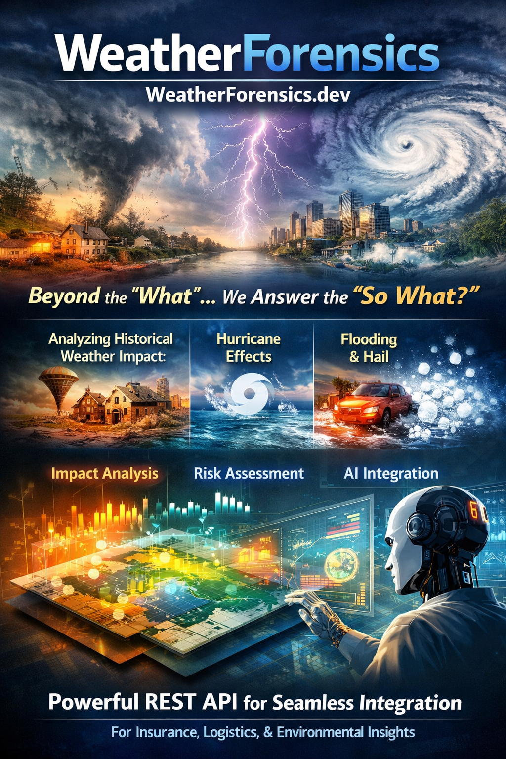 While most services focus on the "what," we focus on the "so what?" Our proprietary engine doesn't just return temperature and wind speed; it calculates the localized impact of historical weather events—ranging from localized tornadoes to regional hurricanes—at a specific coordinate and datetime.